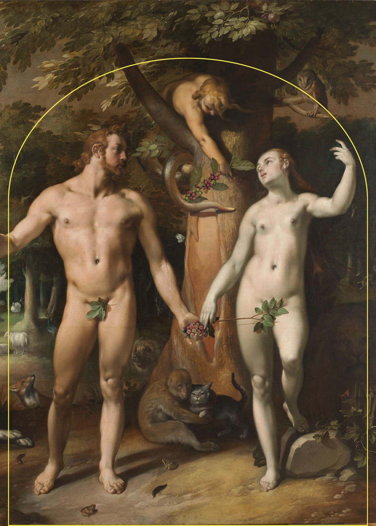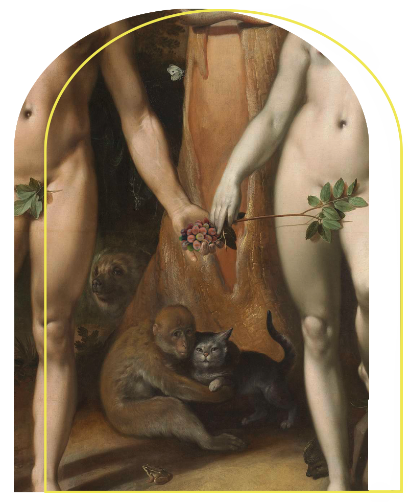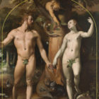 Adam und Eva waren nach der biblischen Erzählung im 1. Buch Mose das erste Menschenpaar und somit die Stammeltern aller Menschen. Eva wird von der Schlange überredet, trotz Gottes Verbot vom Baum der Erkenntnis von Gut und Böse zu essen.