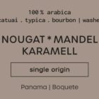 Leichte bis mittelkräftige Röstung, harmonisches Säurespiel. Sanfte Karamelltöne im Abgang, getragen von Mandelnoten und cremigen, nougatartigen Tendenzen. Dunkle, weiche Aromen auf Basis einer Arabica-Röstung. Auch gefiltert ein vollmundig-aromatischer Genuss.